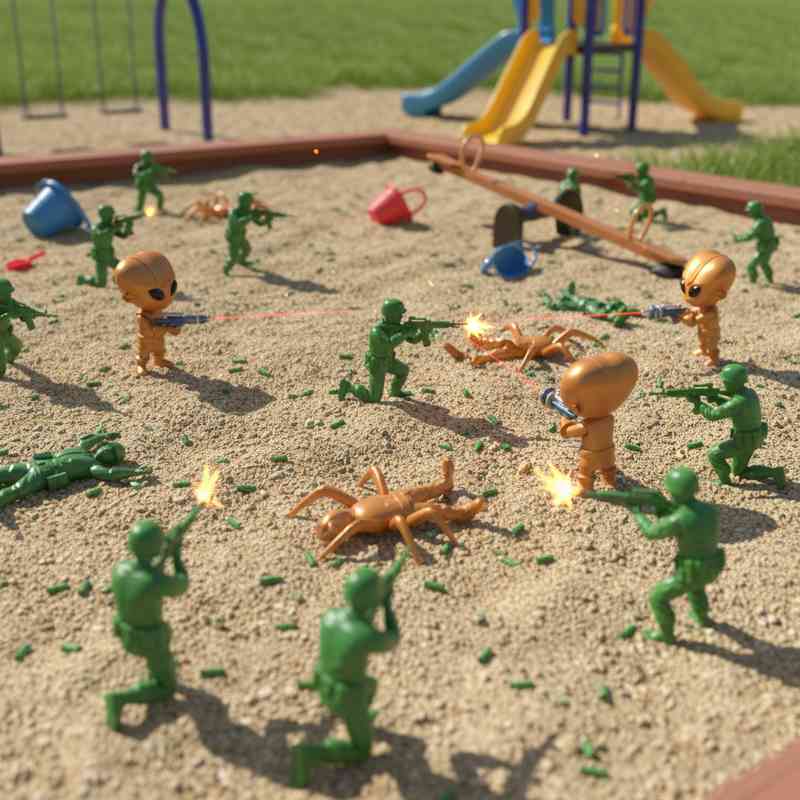 No one is certain of the Space Aliens’ true color, not even the Space Troopers. Apparently, prior to the events of Toys in Space, the Aliens assimilated a large number of Orange Nation Army Men and somehow used them to bolster their ranks. The same thing happened during the conflict, where they apparently assimilated some Greens and Blacks.
