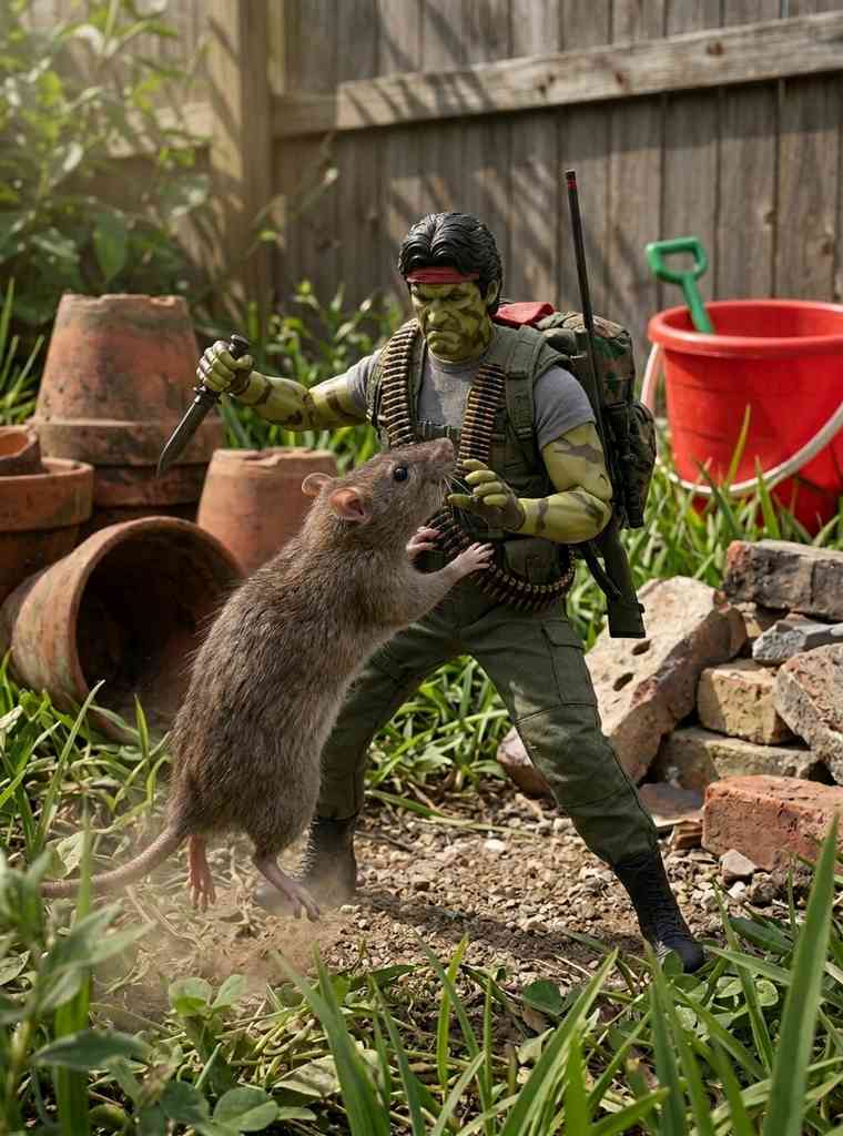 Unlike Plastic World figures, whose features are often simplified, the Commando’s sculpt includes fine details: wrinkles, scars, musculature, and layered clothing. This gives him an unsettling presence: he looks alive, but not in the same way as the Army Men.