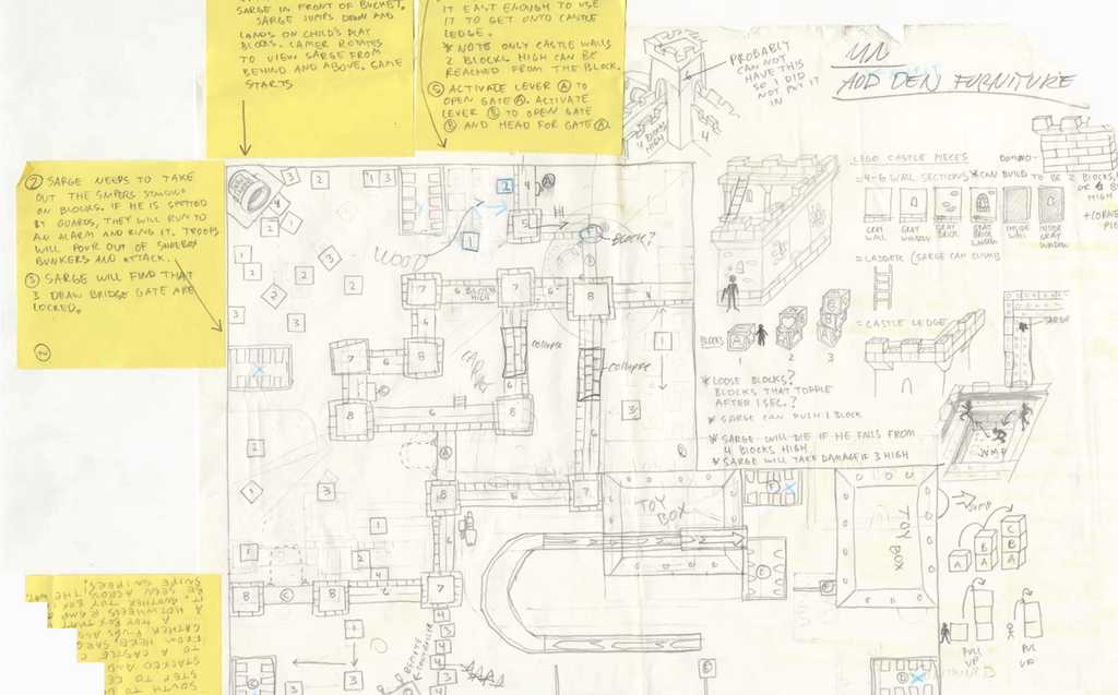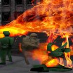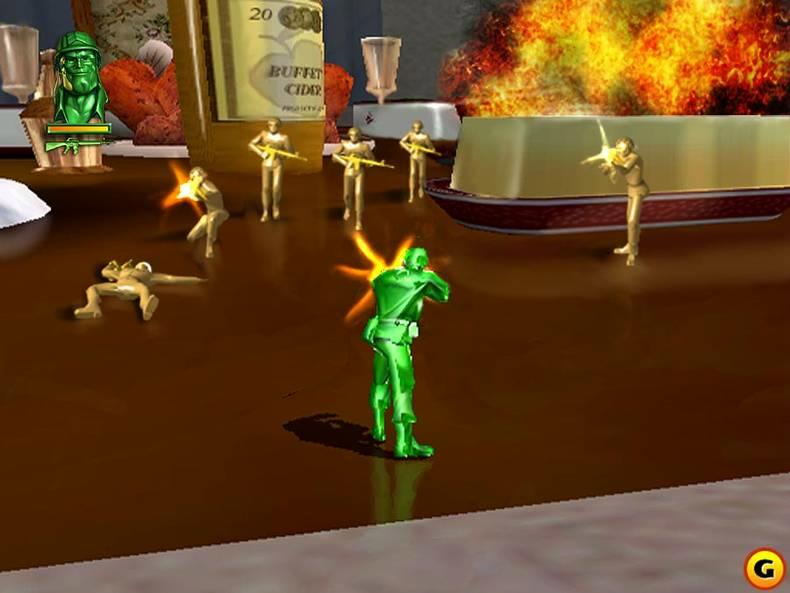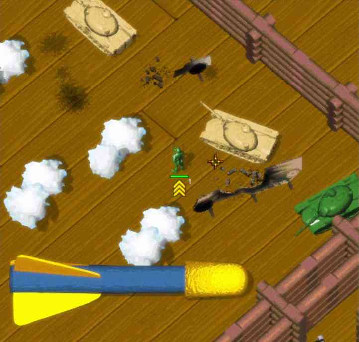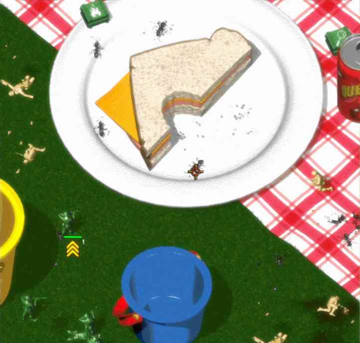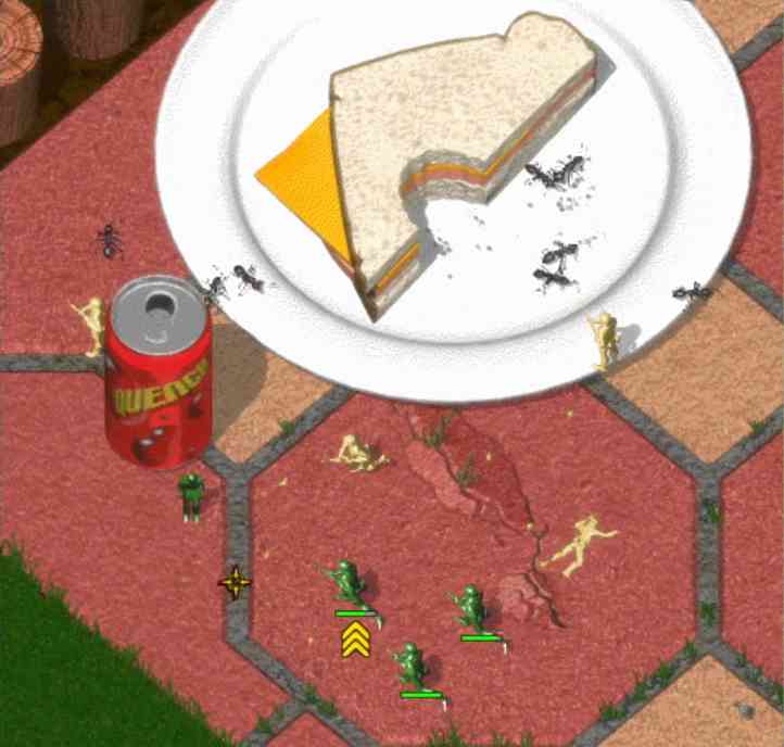 - Initial Entry Oddities: The first game lean towards a top-down tactical shooter where your soldiers can easily die. Furthermore, the tone is more sombre and the plot is minimal, and the sequel hook ending where your soldiers enter the real world is treated as a surprise. The second game took the “toy soldiers fighting in the real world” plot and ran, becoming a denser and wackier increased action sequel as the soldiers fight other toys and insects over kitchen counters and gardens.