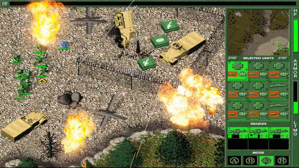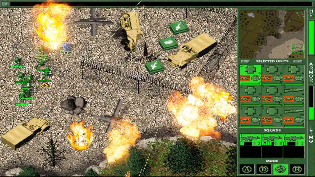 - Infinite Ammo: Most of the games tend to give your starting weapon infinite ammo, sometimes with a drawback (the M16 in the N64 Sarge’s Heroes games has a very slow rate of fire, the PS1 Sarge’s Heroes 2 makes it overheat when fired too much) and sometimes with an ammo-guzzling upgrade available (the BAR in the original two games, which trades the infinite ammo for a much higher rate of fire).