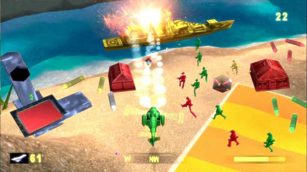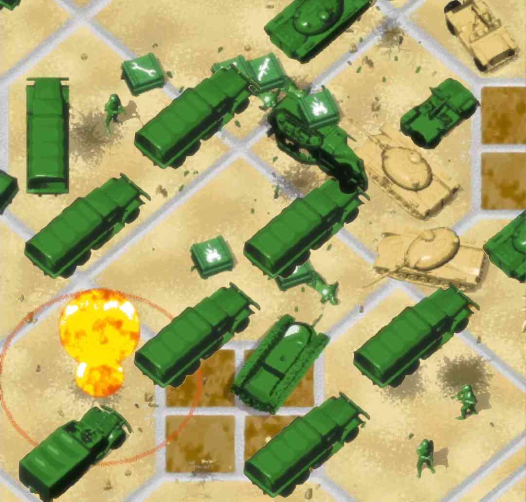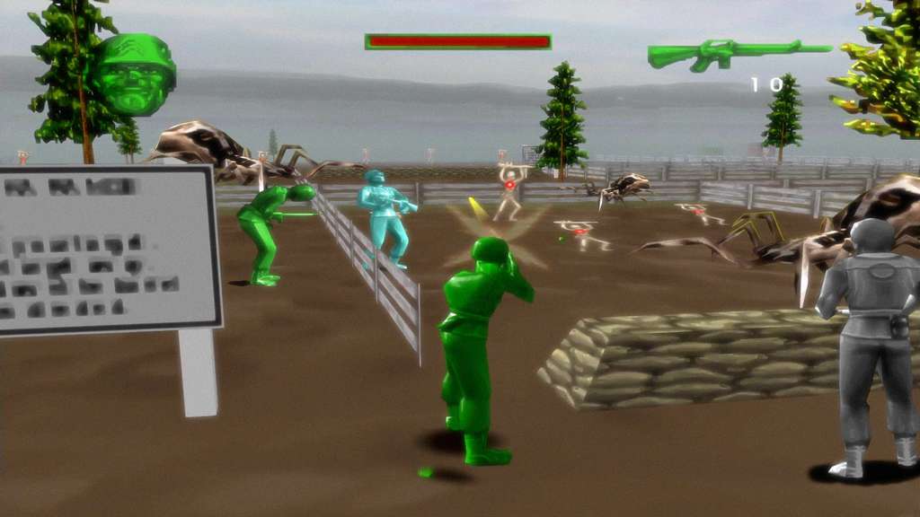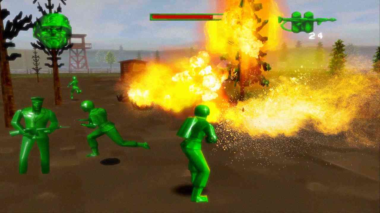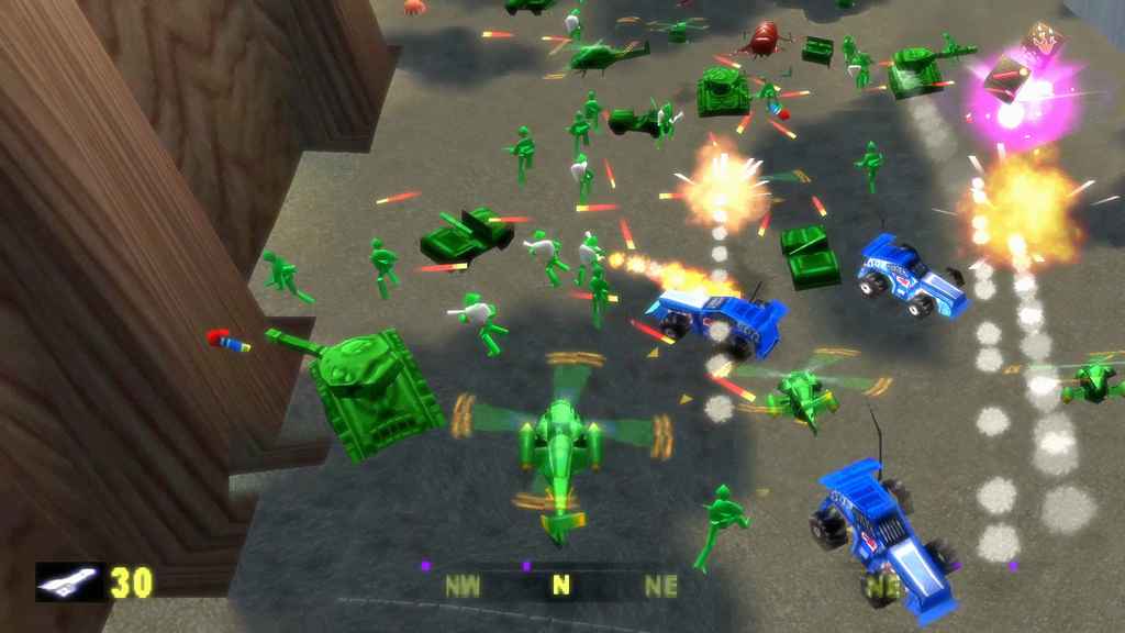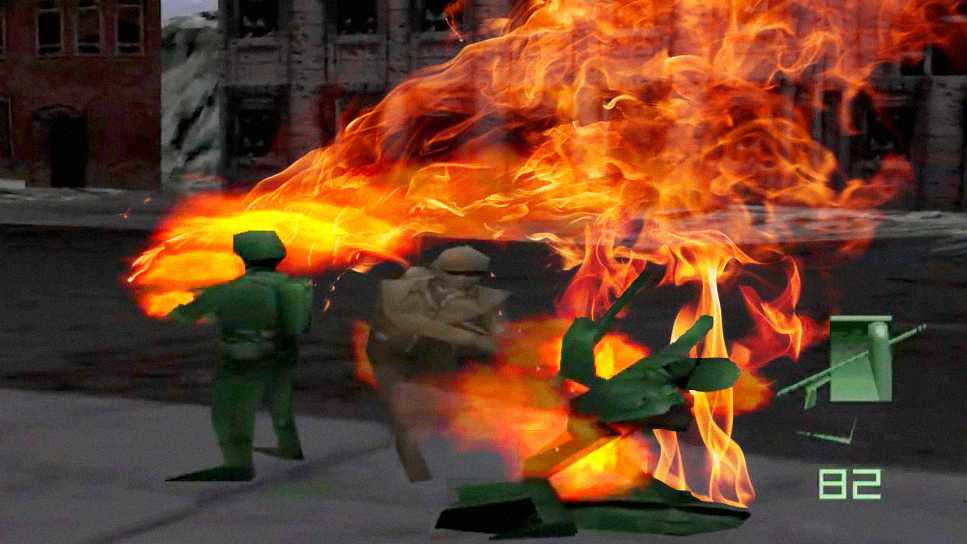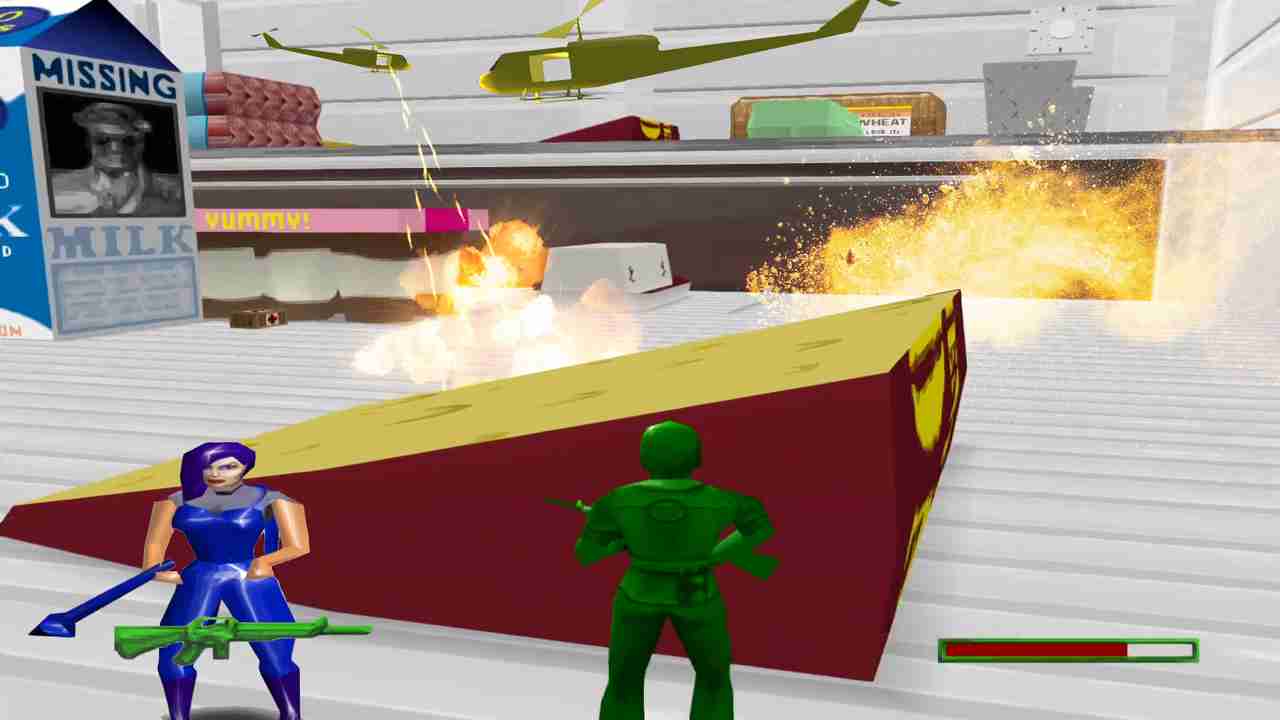 - Initial Entry Oddities: The first game lean towards a top-down tactical shooter where your soldiers can easily die. Furthermore, the tone is more sombre and the plot is minimal, and the sequel hook ending where your soldiers enter the real world is treated as a surprise. The second game took the “toy soldiers fighting in the real world” plot and ran, becoming a denser and wackier increased action sequel as the soldiers fight other toys and insects over kitchen counters and gardens.