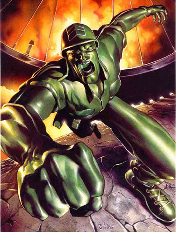 The Army Men video game franchise, which began in 1998, is known for its distinctive iconography that draws heavily from the classic green plastic toy soldiers. Here are some key elements: