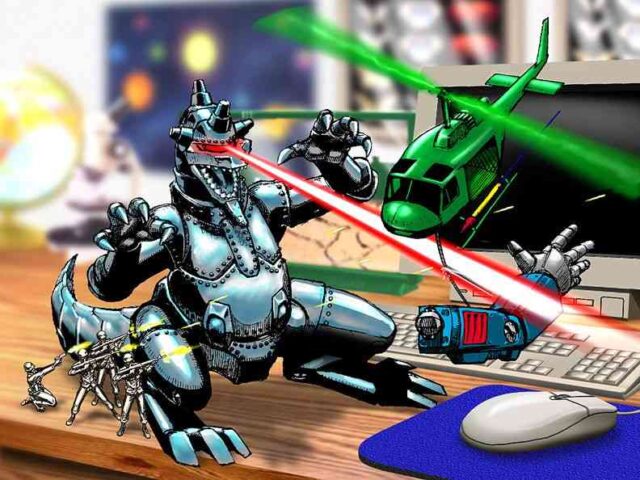 And the same thing happens with the Prehistoric World, Space world, Brick World (the world of Army Men equivalents for LEGO) and Action World, the world of action figures and superheroes, among many more. FINALLY, we think it’s better to focus our project on a universe of toys, the Toyverse, also called Microverse, to be able to collaborate with many more people. Without going any further, Attack on Toys is a game that combines Army Men plastic soldiers, action figures and LEGO figures fighting against each other.