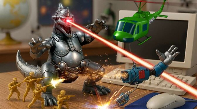 The main protagonist of this story is a Green Air Cavalry pilot named William Blade. An all-new hero Captain William Blade leaded the Air Cavalry in a new campaign where they joined up with Sarge Hawk, the hero of the Green army from those times, with participation of Thick and Vikki too. Continuing the epic battles between the Green and Tan plastic soldiers from that era, together they fought in the air and on the ground to rescue POWs, to extract wounded allies, to sabotage enemy plans, and most importantly, to fight the good old evil Plastro Tan nemesis.