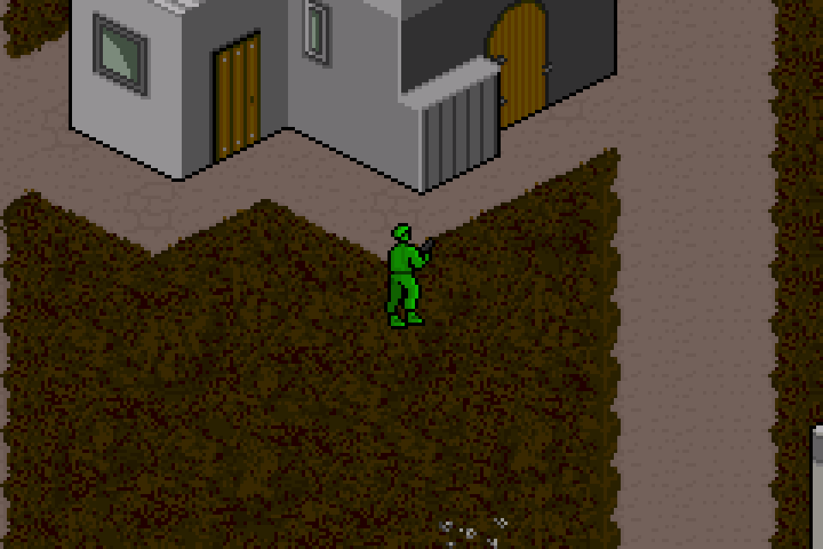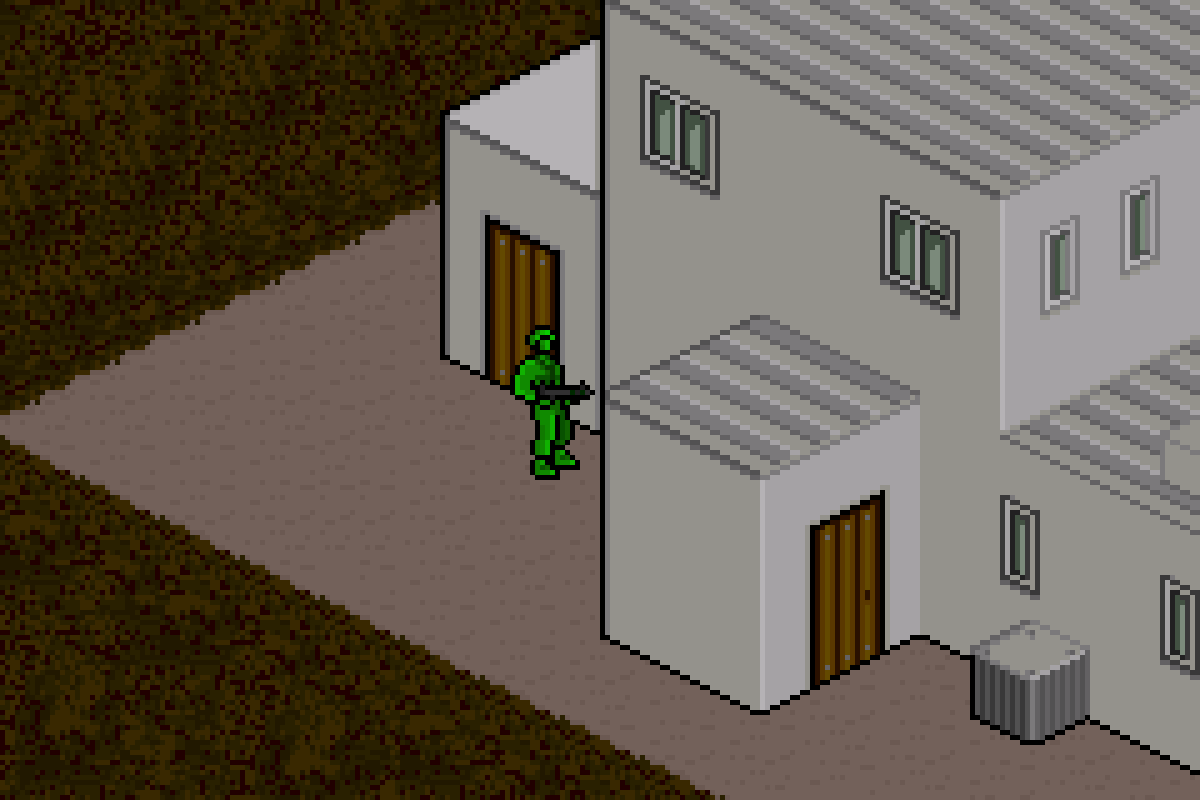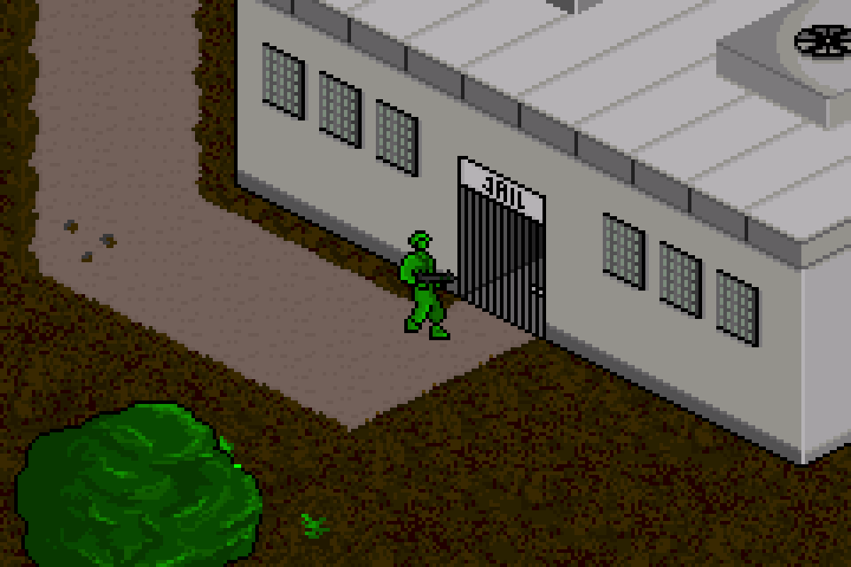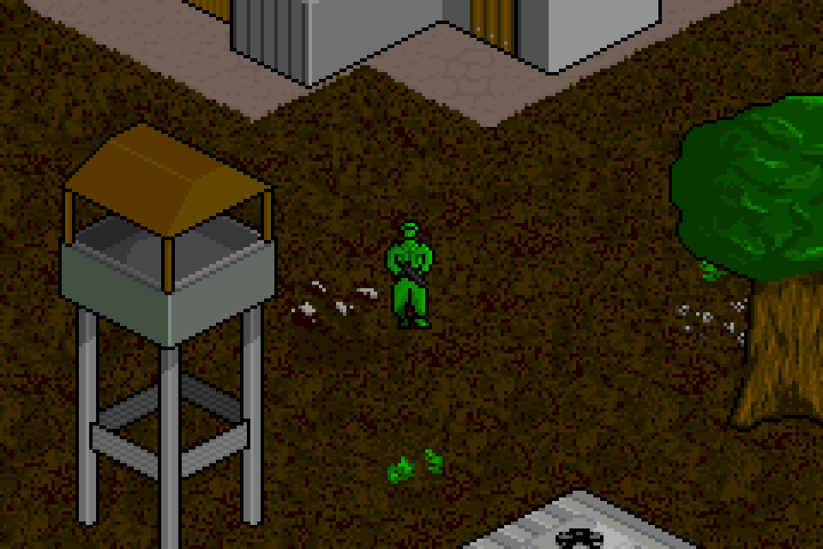 Due to the GBA’s lack of true 3D capabilities, the game was designed around a pseudo-3D isometric perspective, giving players a tilted 2.5D view of the battlefield. Players would be able to move behind objects, hide behind buildings or trees, and even enter certain structures and vehicles. But in some ways this would have been reminiscent of PC games: Army Men (1998), Army Men 2, Toys in Space, etc.