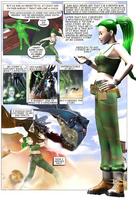 Believing she is following a lead on a story that could be her big break, ace investigative reporter Vikki G. is actually falling into a diabolical trap set by her nemesis, the beautiful Blue superspy Brigitte Bleu!