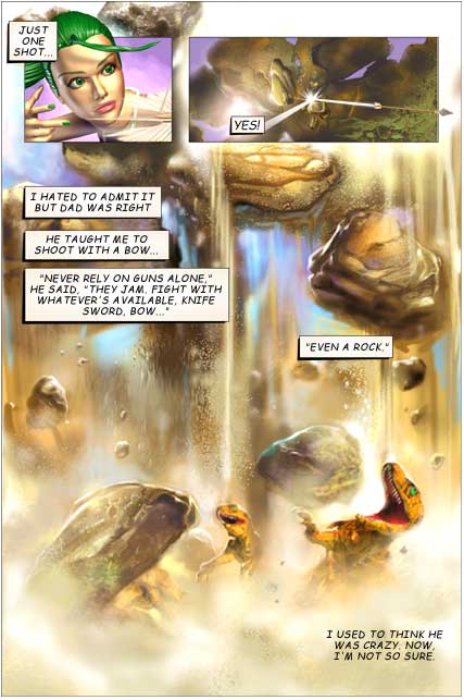 Lured into the Portal by the evil Brigitte Bleu… and lost in time… Vikki G. and her ferocious sidekick Leo the Lion must battle through exotic worlds. Join them in a journey of imagination and adventure as they work together to find new portals, battle deadly foes, solve tricky puzzles, and explore each world for a way home. Going through seven action-packed worlds fighting Dinos, Aliens, Wizards and more… with only a bow and martial arts skills.