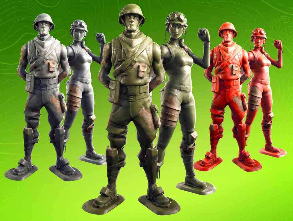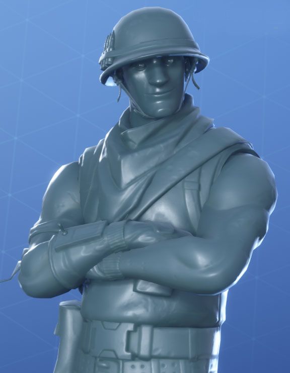 The Plastic Patroller and Toy Soldier are playable skins in Fortnite, designed to resemble the classic plastic Army Men toys. This character is part of the Toy Soldier Set and brings a nostalgic, playful element to the game. Players can use Plastic Patroller to embody a toy soldier, adding a unique and whimsical touch to their gameplay experience. The characterโs design includes a green plastic texture, also red and grey, complete with molded details that mimic the look of traditional toy soldiers.