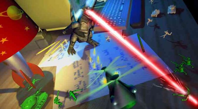 - Amazing toy vs. real-life combat in 7 “Our World” environments