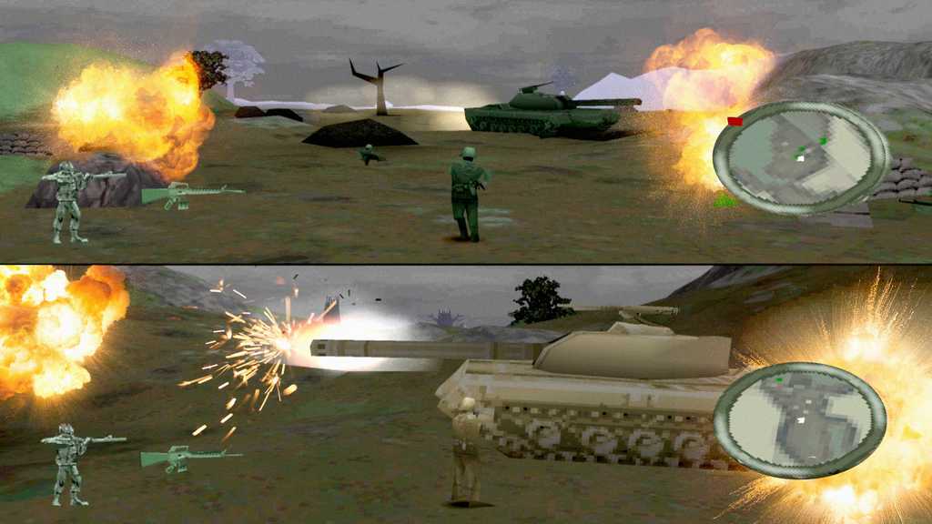 A soldier commanded Green Army forces in three theaters of war — Land, Sea and Air!. The Tan enemy was mobilizing for invasion. He had all the Green forces at his disposal: helicopter, battleship, bomber, tank, the whole nine yards. It was total war for him to command in the most complete Army Men war yet!